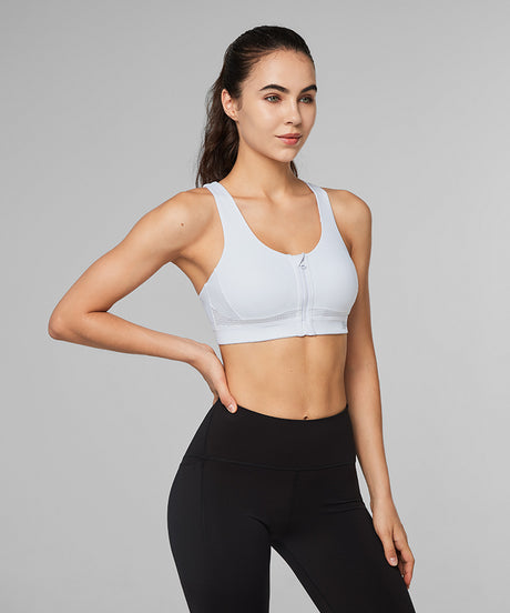 Power Zip Front Mesh Padded Running Bra