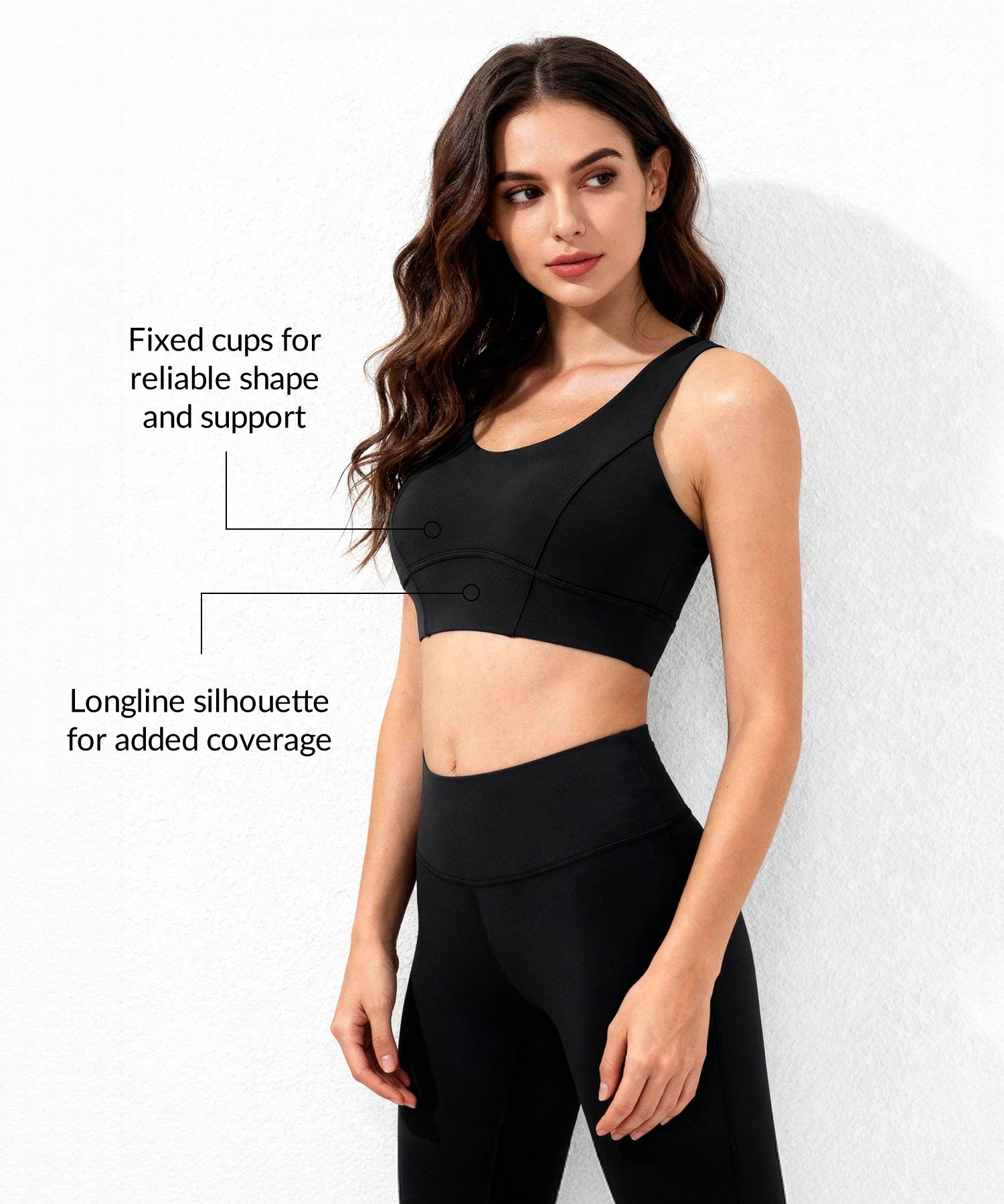 Gepolsterter Longline-Yoga-BH mit breitem Unterbrustband