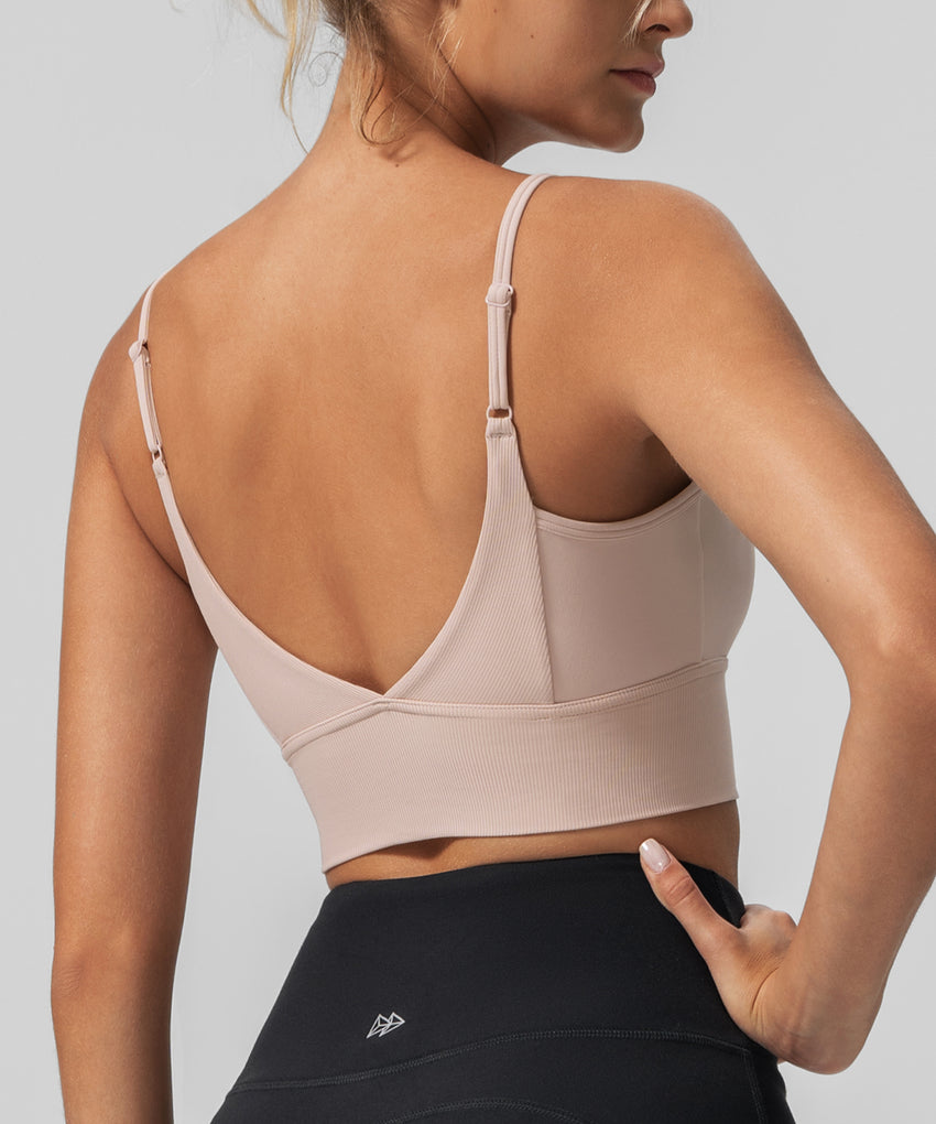 Sujetador de yoga acolchado acanalado con cuello en V Echo
