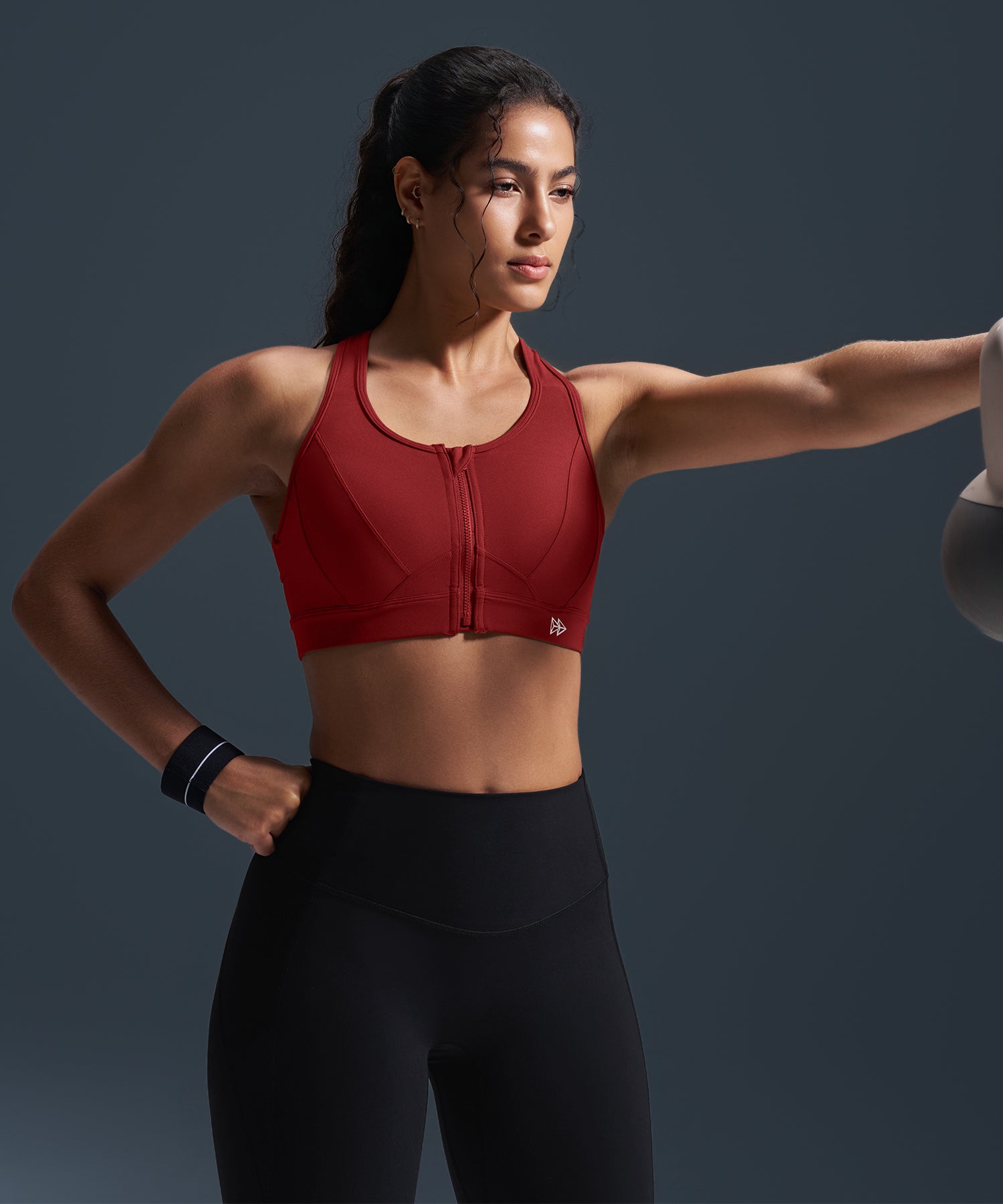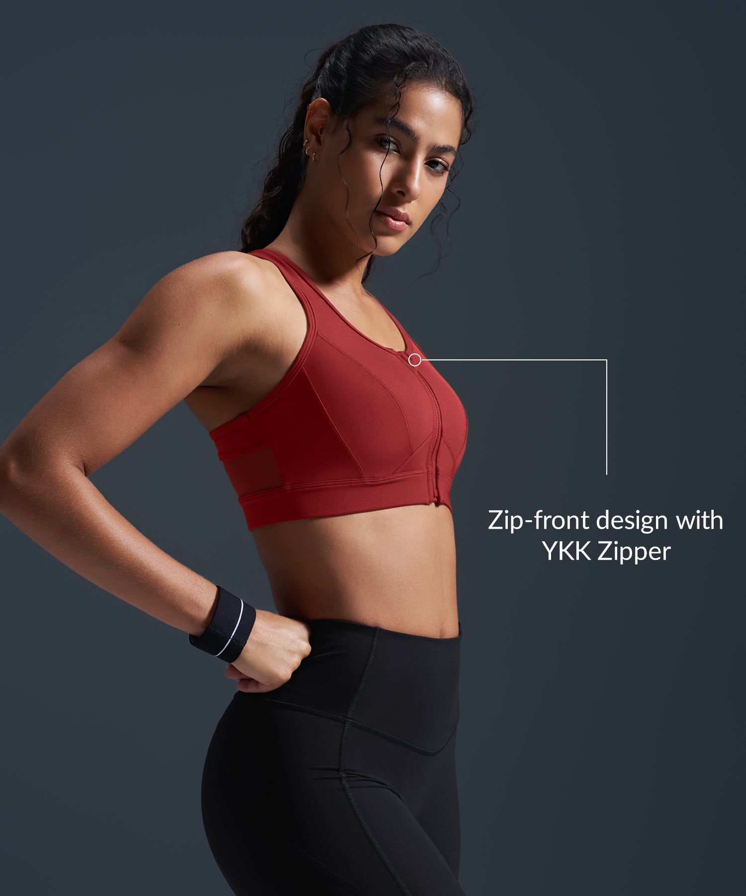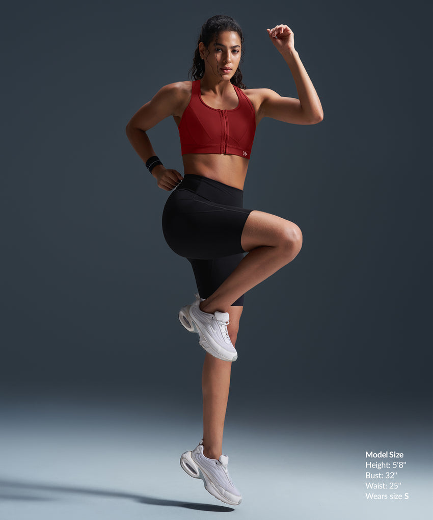 Sujetador deportivo de running con espalda nadadora, acolchado y malla con cremallera frontal Enfold