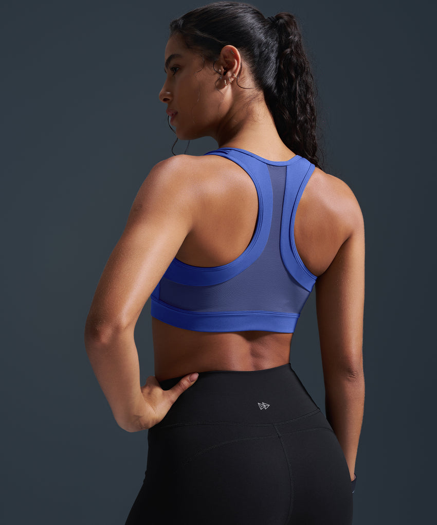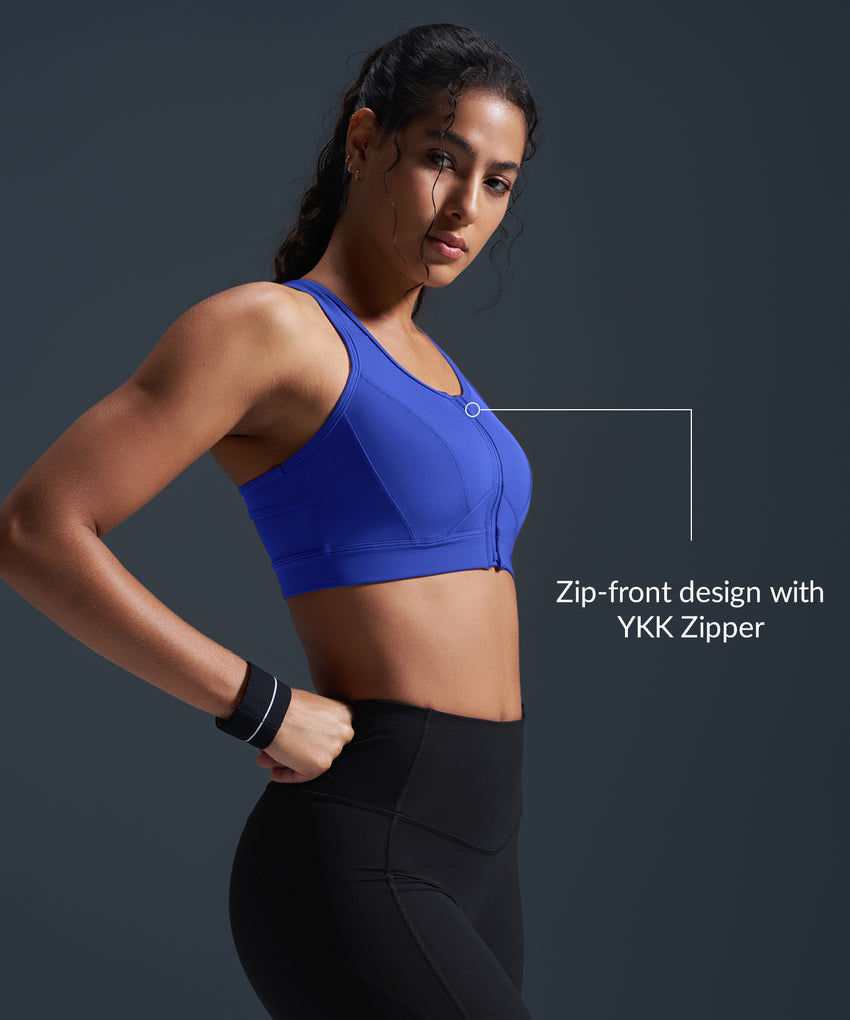 Sujetador deportivo de running con espalda nadadora, acolchado y malla con cremallera frontal Enfold