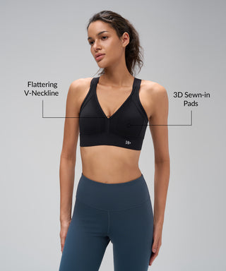 Power V-Neck Adjustable Cross Back Padded Running Bra