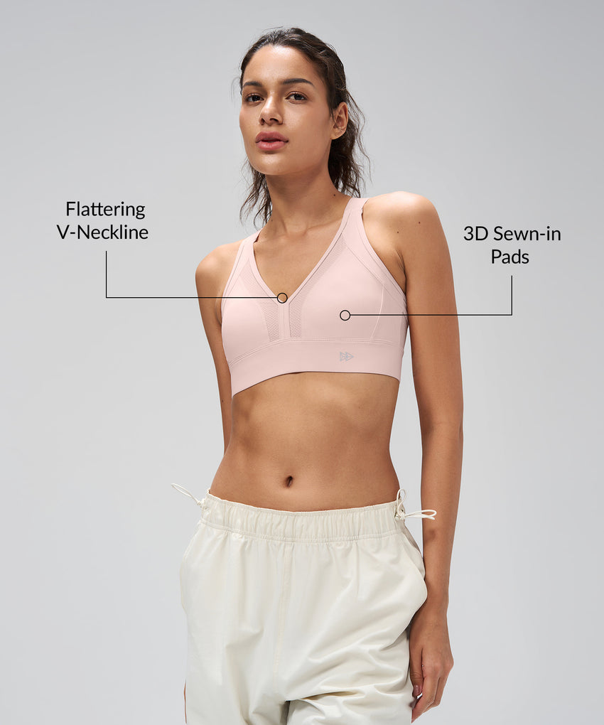 Power V-Neck Adjustable Cross Back Padded Running Bra