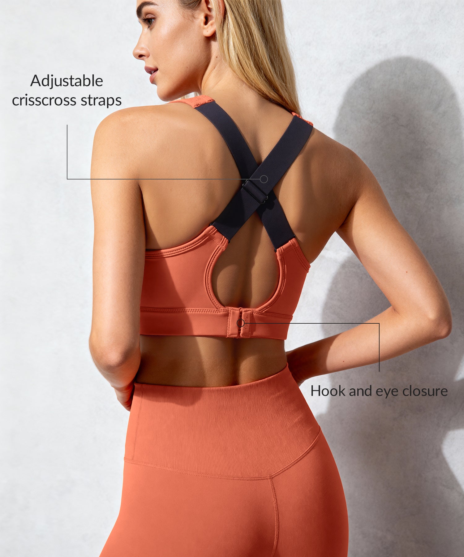 -Sujetador deportivo de alto impacto con tirantes cruzados ajustables.
