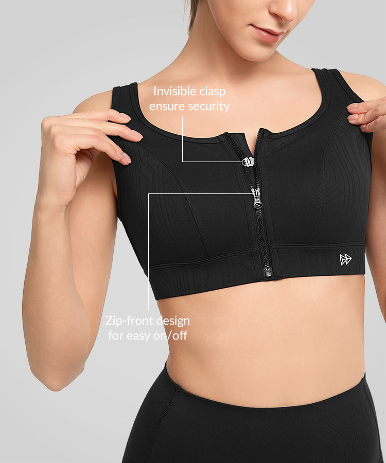 Sujetador deportivo de running con estampado de rayas y cremallera frontal Power Zip