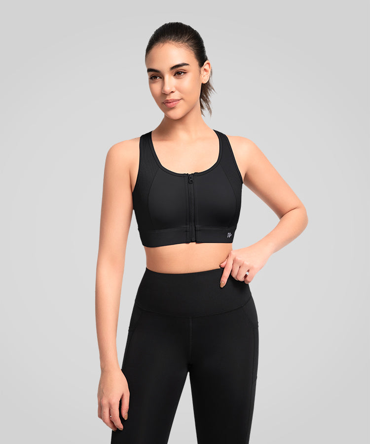 Reggiseno da corsa imbottito in rete con cerniera frontale Power