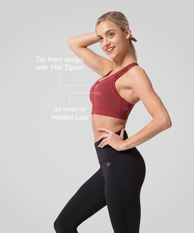 Reggiseno da corsa imbottito in rete con cerniera frontale Power