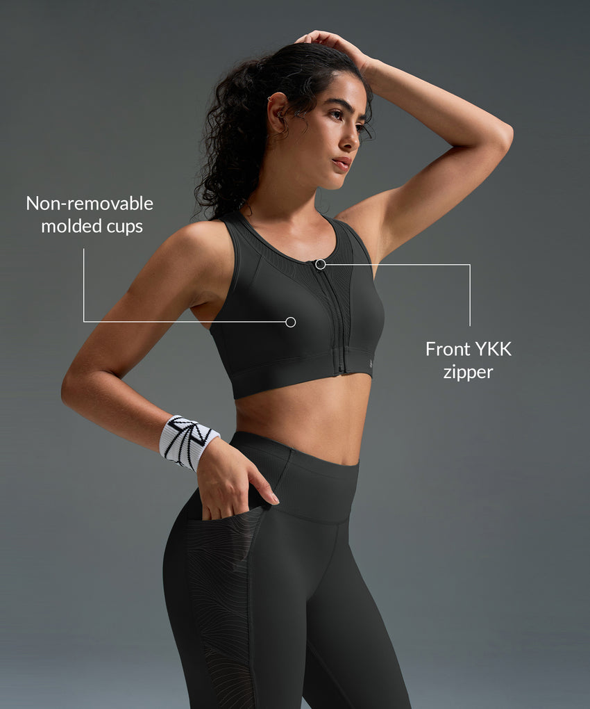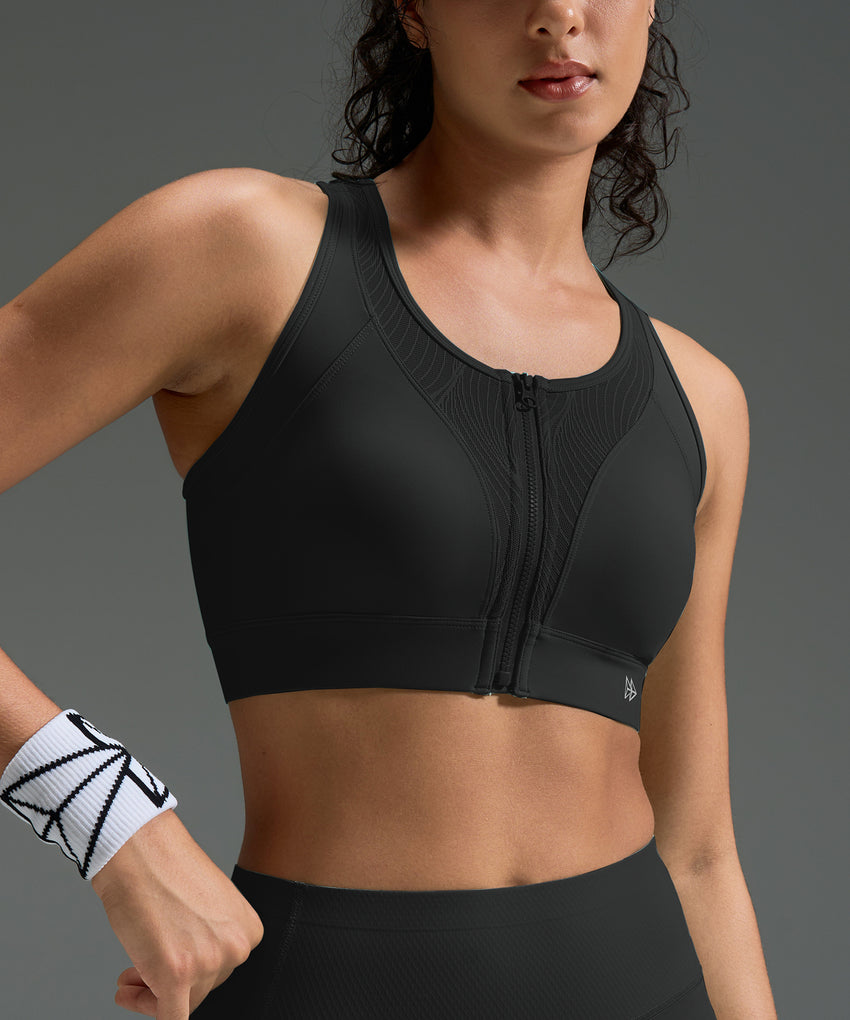 Reggiseno da corsa Power Zip Front Striped Mesh Racerback
