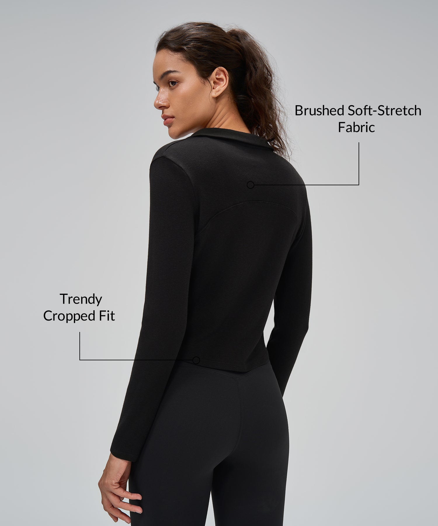 Anywhere Brushed Half-Zip Long Sleeve Crop Top