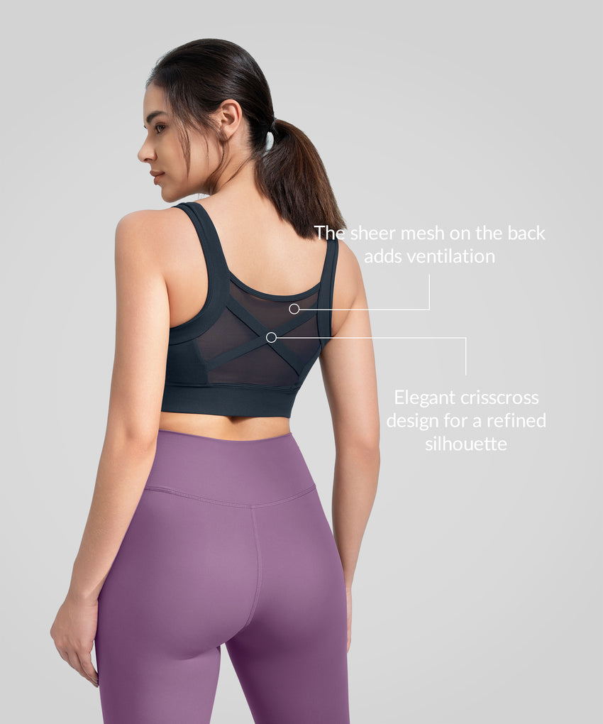 Anywhere Square Neckline Cross-back Mesh Yoga Bra