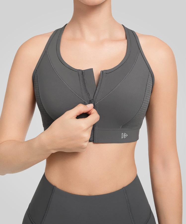Power Zip Front Breathable Mesh Running Bra