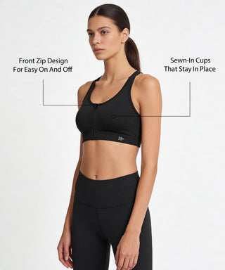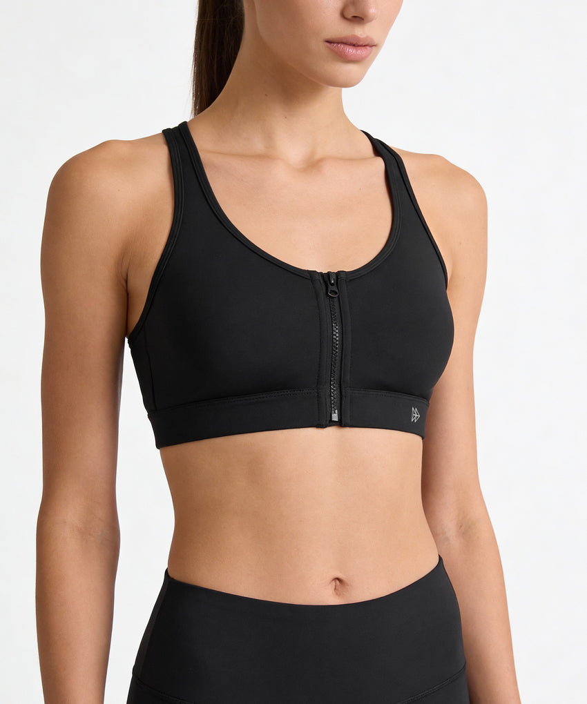 • High-impact sports bra with a zip-front design