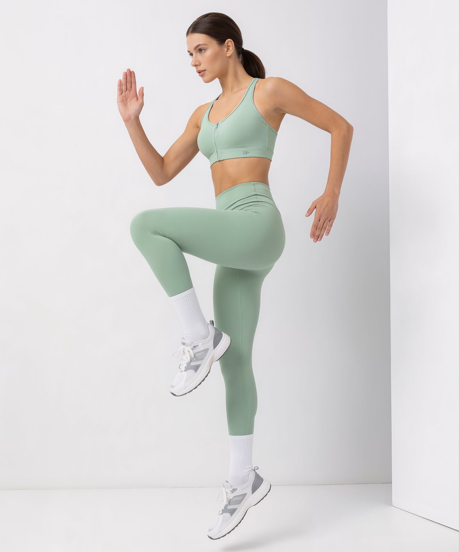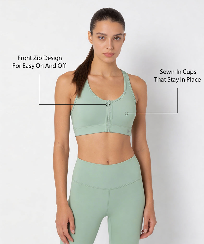 Shift Front Zip Sewn-in Pads Racerback Running Bra