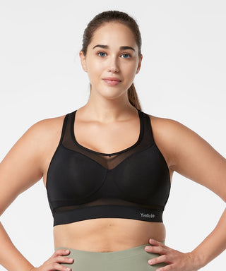 This flee sports bra is designed for high-impact sports. Perfect for hiking, runningand other workouts. The pyramid racerback design relieves backpressure. A large area of mesh fabric speeds up heat dissipation and keeps you dry.